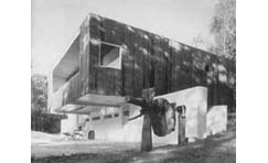 What you get is completely mental (but in a good way!). Oh, except it perpetrates that old myth that Modernist architects live in Tudor mansions. As many fans know, Sir Basil Spence actually lived in a concrete and wood box that he designed himself in Beaulieu, Hampshire. Here's a couple of nice photos of it. (Apparently, he was given planning permission on the basis that the house would be half timbered. The authorities complained that he hadn't built the Tudor house they meant. He of course replied that it was half timbered -- the top half!)